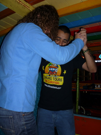 We zijn tot nu toe alleen maar andere Colombiaanse vakantiegangers tegengekomen, echt heel weinig toeristen hier, wat eigenlijk betekent dat de mensen: je niet oplichten, je niet teveel laten betalen (zo´n eur 20 voor een 2 persoonskamer met zwembad), erg geinterresseerd in je zijn (waar komen jullie vandaan is eigenlijk de standaard 1e vraag, ipv in de backpackerswereld waar gaan jullie heen en waar zijn jullie geweest:)), met je op de foto willen (terwijl je zelf denkt, dat je een foto van hen moet maken) en erg behulpvol zijn, ze bellen voor je naar de busmaatschappij, willen mochilla´s (rugzakken) voor je dragen zonder dat er verder een fooi wordt verwacht, komen ´s ochtends vroeg hun bed uit om een ontbijt voor je klaar te maken (inclusief Lindo:) en geven ongevraagd door hoe laat de bussen vertrekken.