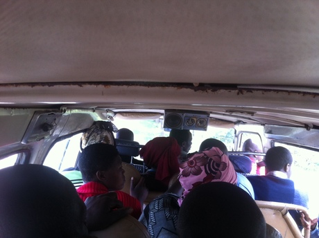 – lokale minibus. Rijdt tussen twee dorpen, korte tripjes. Vaak standaard busjes (Toyota HiAce) waar zoveel mogelijk stoelen in gepropt worden. Met een beetje passen en meten gaan hier ook 20 man in. Dan hangt de toch al vaak gammele bus in zijn achtervering. Dat kostte 1 bus gisteren zijn uitlaat bij een drempel.:)