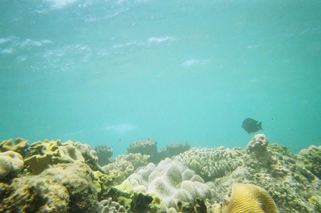 Eenmaal aangekomen op het rif was het heerlijk rustig en kon ik weer een beetje normaal ademhalen. Onze snorkelset ging op en daar lagen we in het water. Zo hebben we heerlijk een beetje rondgedobberd en de mooiste visjes gezien.